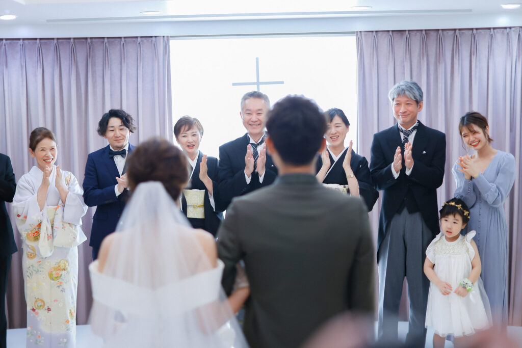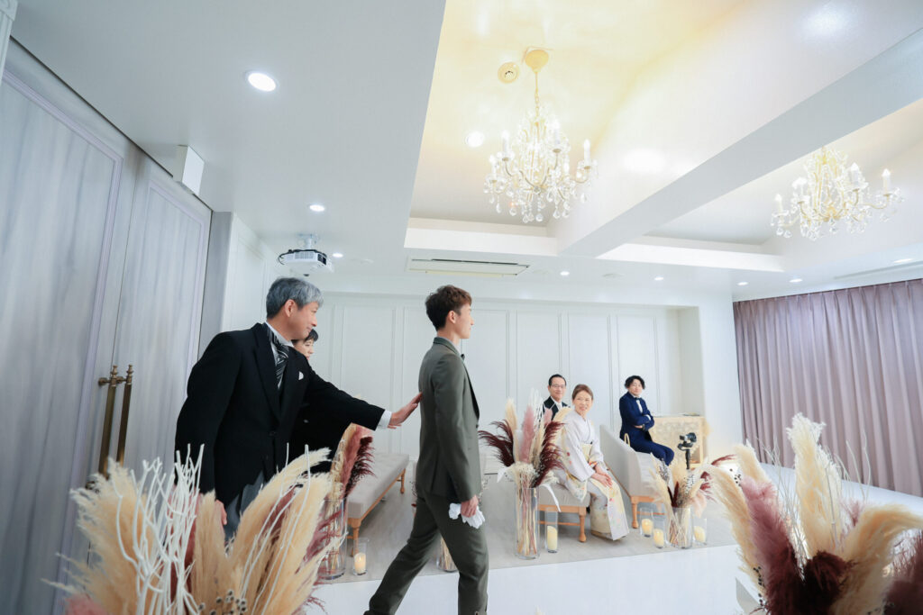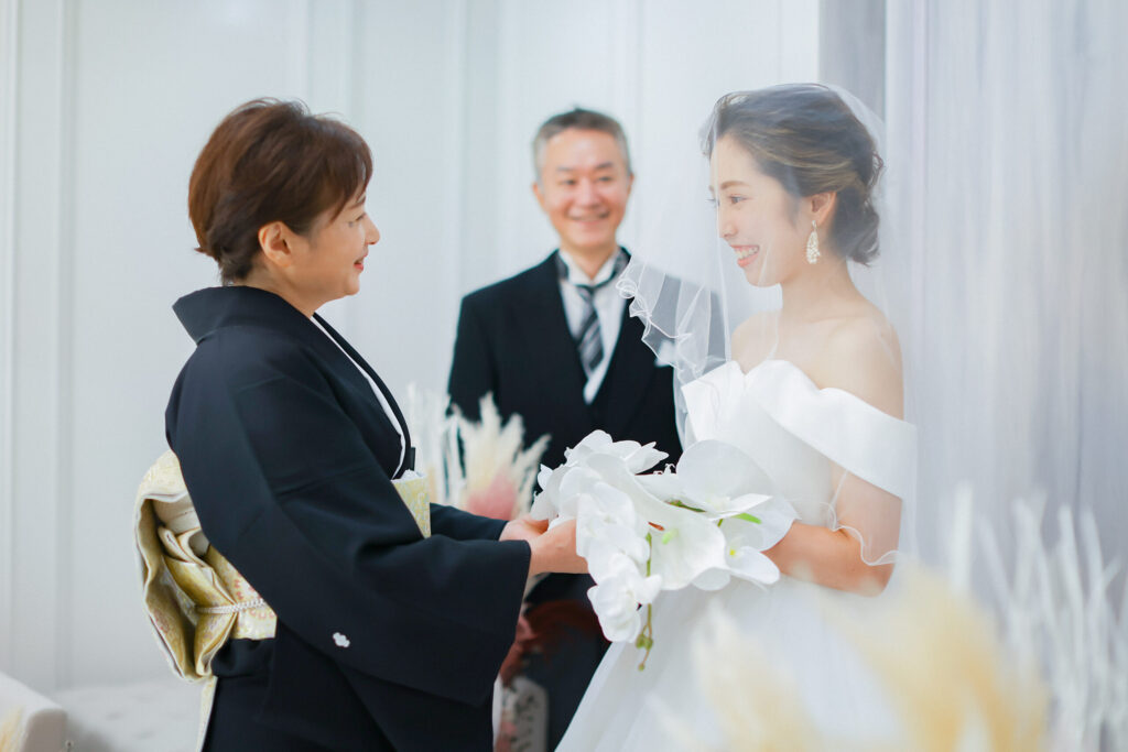 新郎新婦の晴れ姿を前に、家族が自然と笑顔になったり、