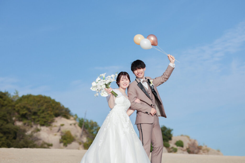 自宅撮影ができて祖父母と一緒に撮影できた 2025.12.09 レポートDATA 撮影日|2025年9月22日 撮影場所|渋川海岸&倉敷美観地区 Couple’s VOICE ポーズをすべて指示してくれて撮影しやすかったです。 ドローンでの動画撮影も良かったです。 また自宅での撮影が追加できたため、私たち以外におじいちゃん、おばあちゃんのショットを撮ってくれたので凄く喜んでくれていました! ありがとうございました。