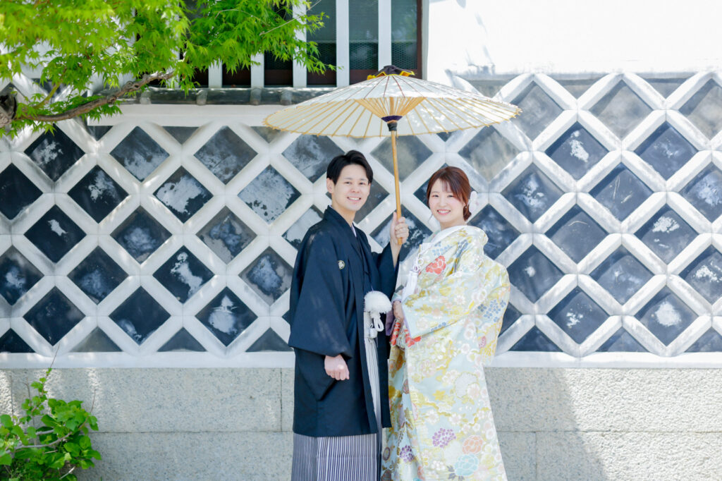 白壁の町並みと新緑のコントラストが美しく、和装洋装もどちらも映える特別な季節。