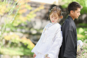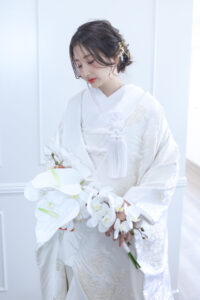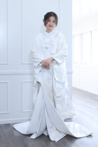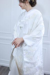 < > 白無垢2 COLOR 白(刺繍はオフホワイト) SIZE FREE PRICE 25,000yen(税込27,500yen) 白さレベル10段階中:6 真っ白の白無垢。 マットな生地にオフホワイトの刺繍が入り、柄が浮き出たようにくっきりと浮かびます。