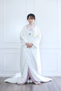 光沢感があり小柄で王道の白無垢です。